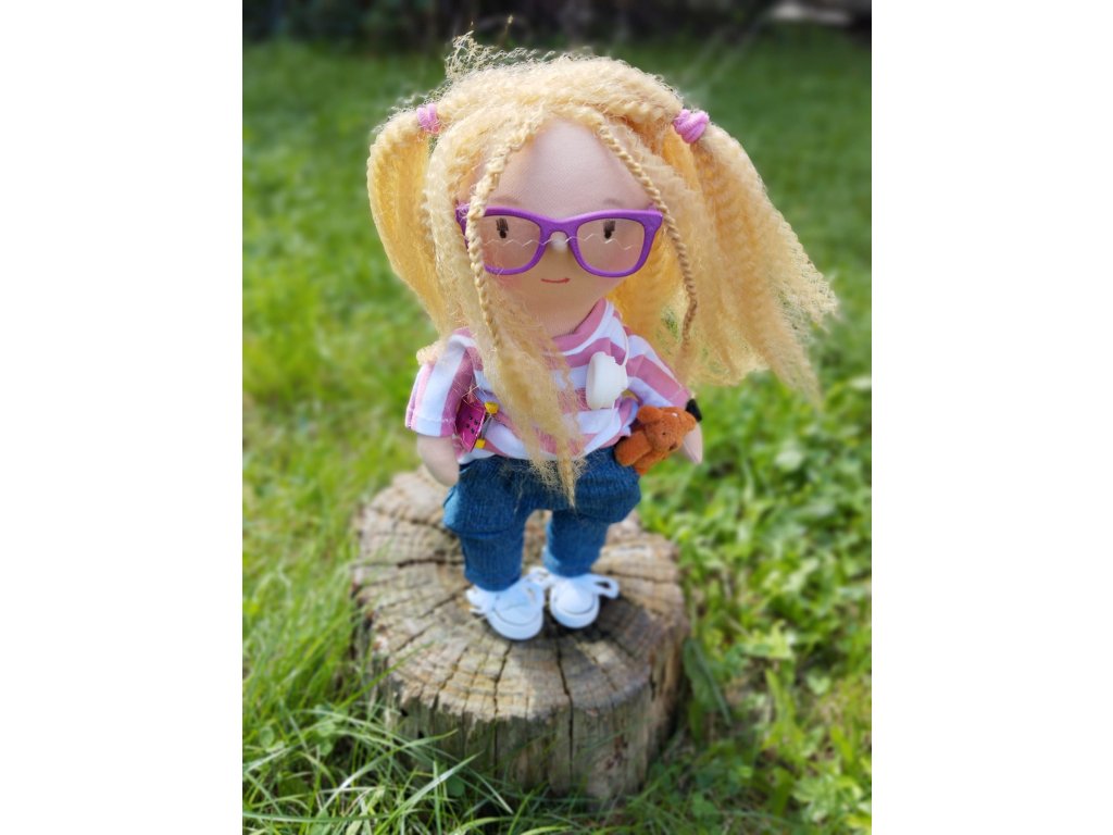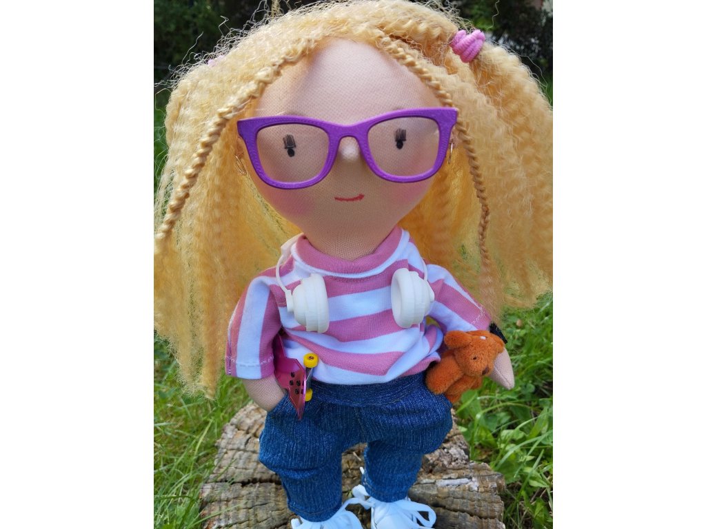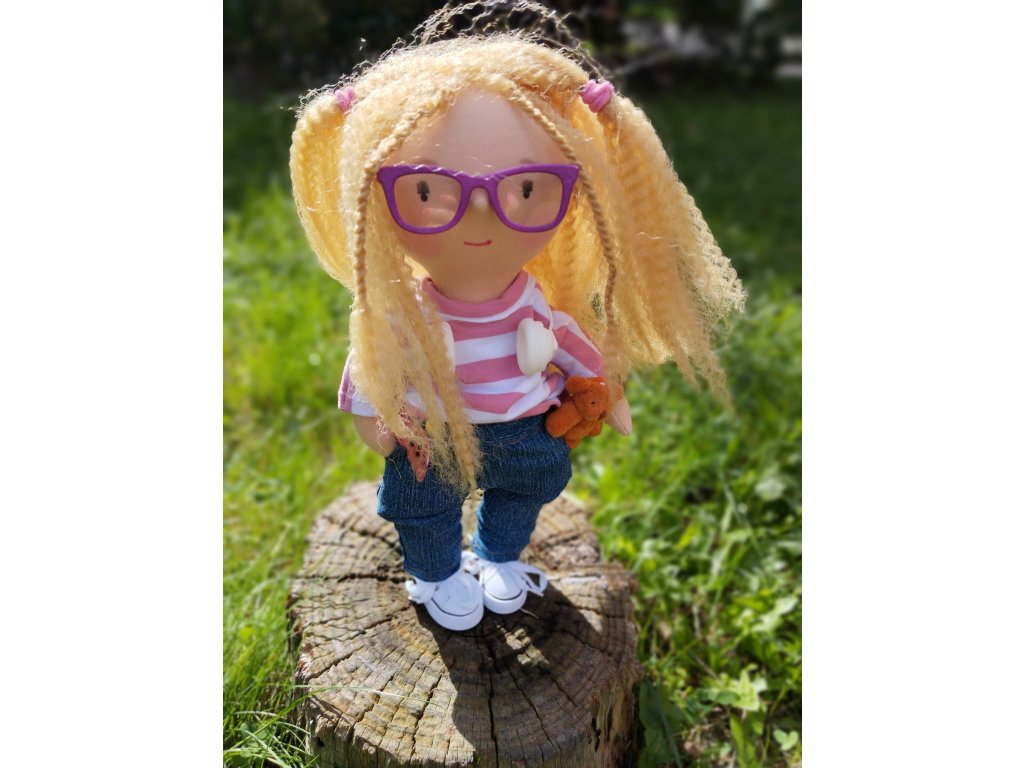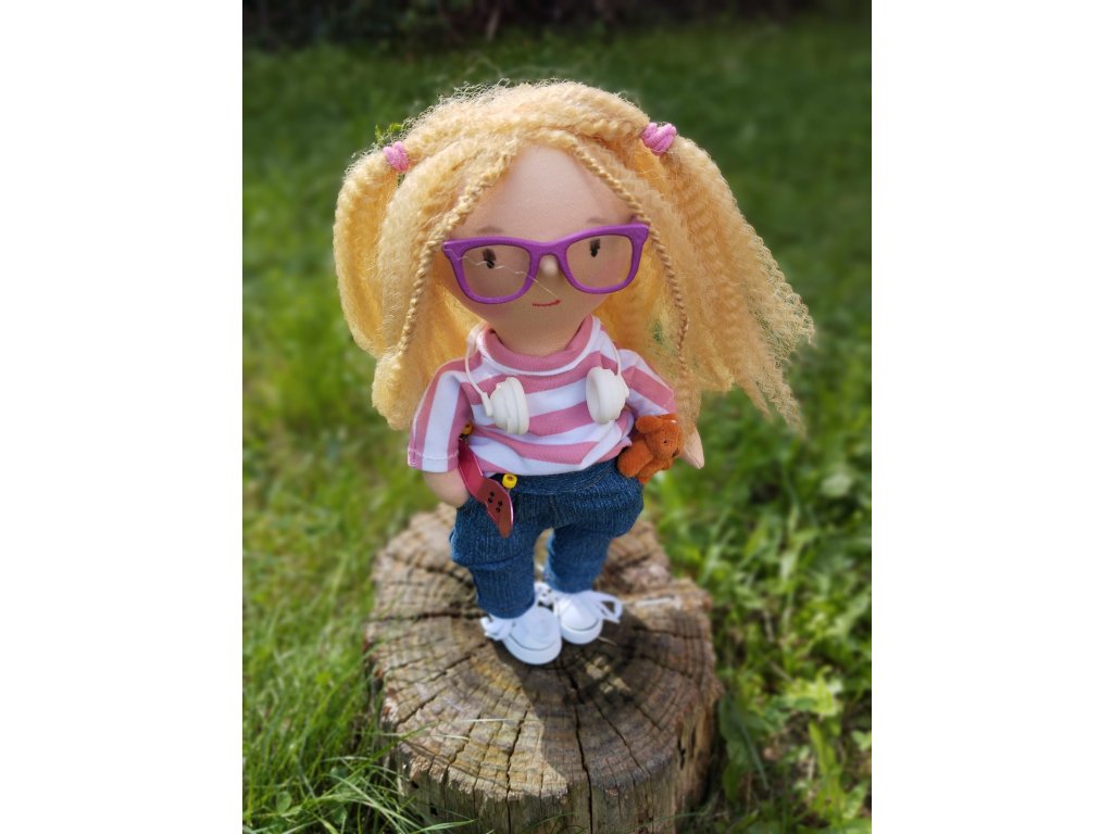 Panenka má na výšku cca 38 cm, ručně příšívané vlásky, vyráběna je ze 100 procentního bavlněného úpletu vhodného pro panenka a plněna dutým vláknem. Vlásky jsou syntetické.