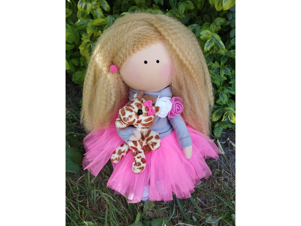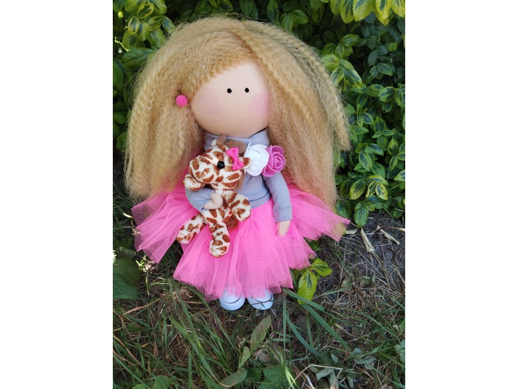 Tato ručně šitá Nanynka v zářivě růžové tylové sukýnce září jako radost sama – je symbolem barevnosti, originality a něhy.
