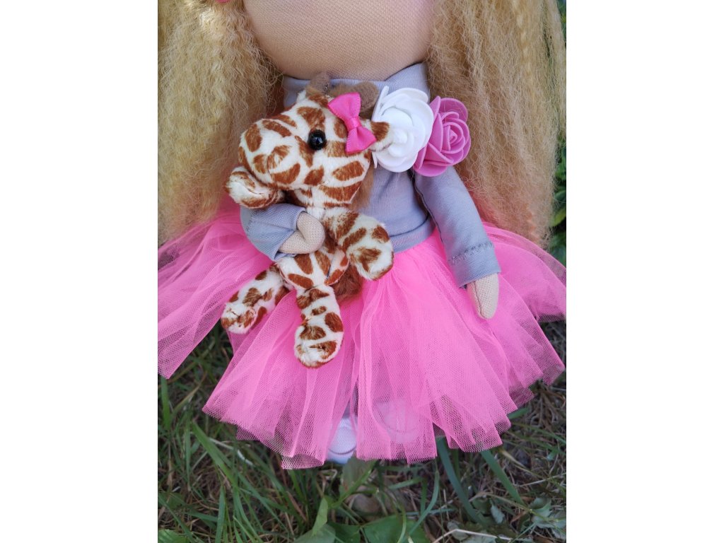 V ruce drží svou nejlepší kamarádku – žirafku, která jí věrně dělá společnost při každém dobrodružství